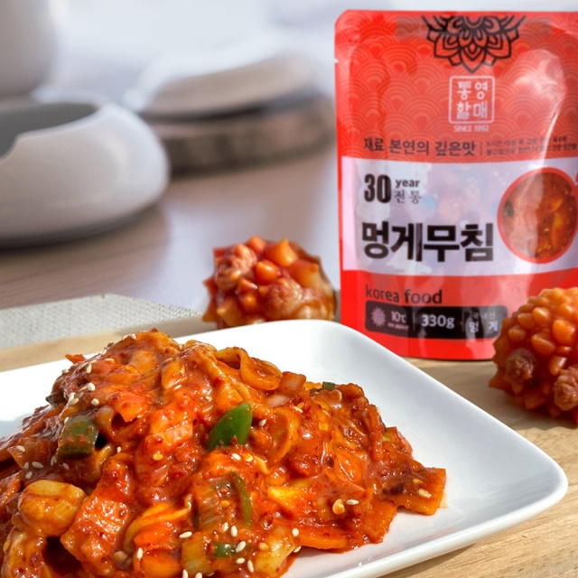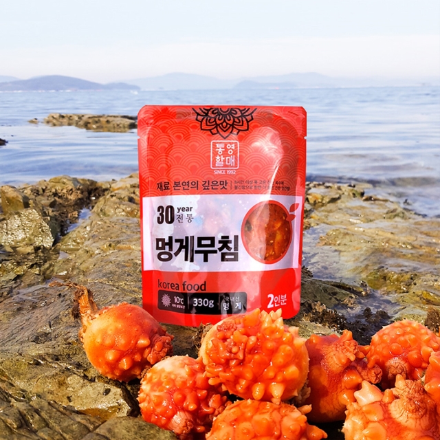 | 1-6. 원재료명 (「농수산물의 원산지 표시 등에 관한 법률」에 따른 원산지 표시 포함) 및 함량(원재료 함량 표시대상 식품에 한함) | 멍게(국내산) 65%, 무(국내산) 10%, 청양고추 5%, 고춧가루, 파, 양파, 액젓, 당근, 물엿, 볶은통깨, 참기름 |