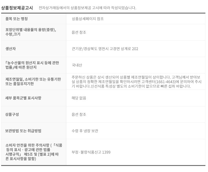| 3. 생산자, 수입품의 경우 수입자를 함께 표기 | 큰기운/경상북도 영천시 고경면 상계로 202 |
